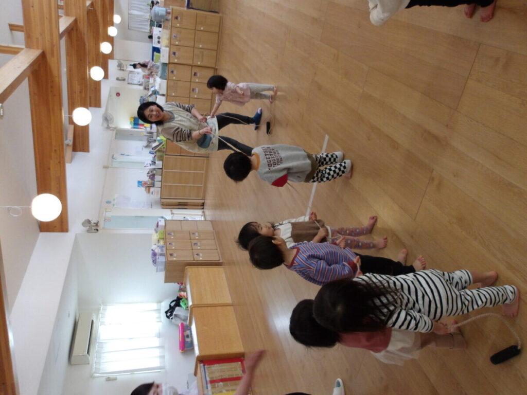 【年長】最近は、大きい組みんなでダンスをしたり、一緒にゲームや室内あそびを楽しんでいる年長さん。また、ころころドッチボールなど年長さんだけで遊ぶこともあり、体をたくさん動かして活動しています!