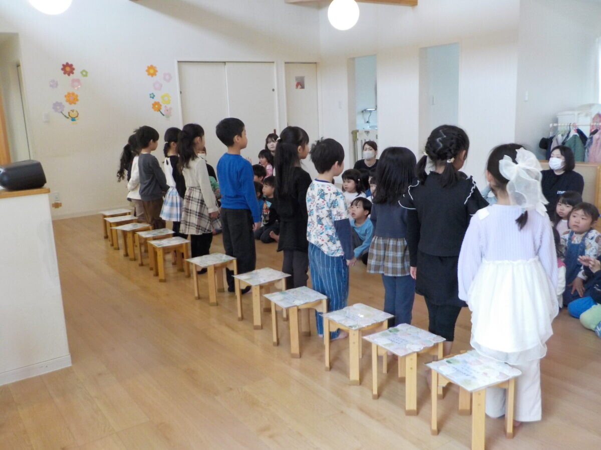 3月28日(土)に卒園式を迎え、31日(火)にお別れ会をしました。慣れ親しんだ保育園を離れるのは「すごくさびしい」と言っていた年長さんですが、小学校へ行くのも「楽しみ♪」と笑顔の子どもたち☆