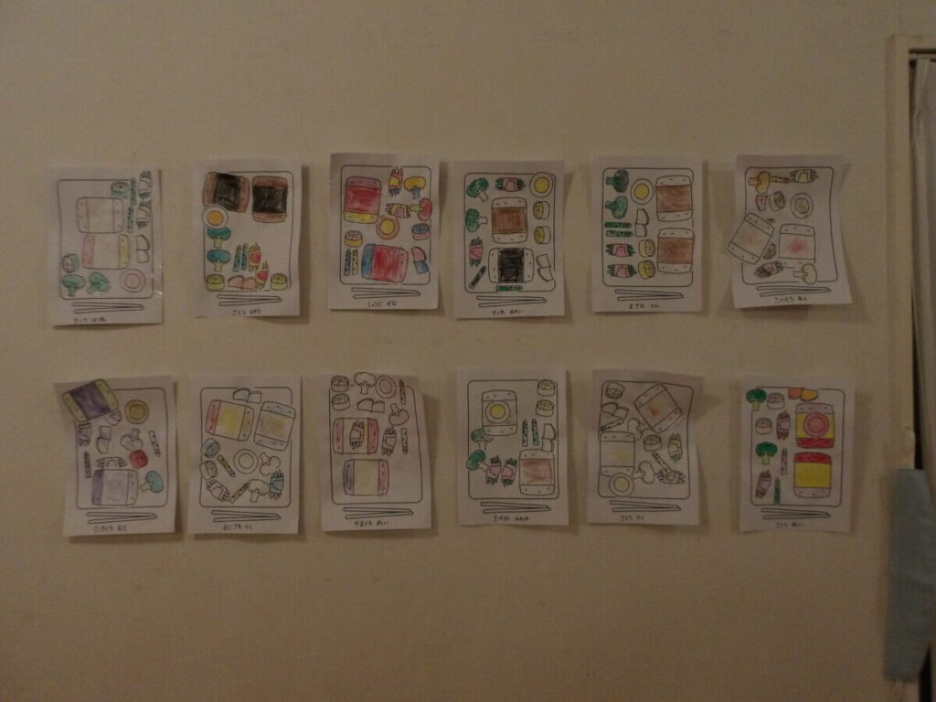 1月19日(月)にお弁当作りをしました。おかずに色をぬり、お弁当箱にのりでおかずを貼りました。「ここにブロッコリーを貼ろう!」などと言って考えながら貼っていました。今年度のお弁当は1月19日(月)で終了しました。心のこもったステキなお弁当をありがとうございました。子どもたちとても喜んでいました。
